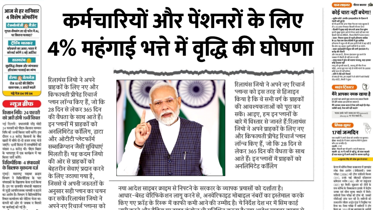 अगले 72 घंटे भारी बारिश और बर्फीली हवाएं, IMD ने कई राज्यों में शीतलहर का अलर्ट जारी किया IMD Weather Alert gaurav — March 18, 2026 पेंशनरों के लिए खुशखबरी, 4% महंगाई भत्ते में वृद्धि की आधिकारिक घोषणा DA Hike Employees gaurav — March 18, 2026 सरिया और सीमेंट के कीमतों में बड़ा बदलाव, जानिए आज के ताजा दाम Sariya Cement Latest Price Today gaurav — March 18, 2026 देश के कई राज्यों में आंधी, ओले और बारिश की संभावना gaurav — March 18, 2026 10 साल तक अनाज सुरक्षित रखने के 3 जादुई और जैविक तरीके gaurav — March 18, 2026 SBI, PNB, कैनरा बैंक खाताधारकों के लिए 5 बड़े बदलाव, हो सकता है नुकसान SBI PNB Canara Bank New Rules gaurav — March 18, 2026 पुश्तैनी संपत्ति में अपना हक और हिस्सा कैसे लें? जानें कानून और दावा करने की सही प्रक्रिया Ancestral Property Rights 2025 gaurav — March 18, 2026 पेट्रोल-डीजल के दाम आज फिर घटे, देखें कितना सस्ता हुआ ईंधन Petrol Diesel Price Today gaurav — March 17, 2026 लगातार 5 दिनों की छुट्टी घोषित, बच्चों की हुई मौज, यहां देखें पूरी सूची School Holiday List gaurav — March 17, 2026 Previous 1234…14 Next